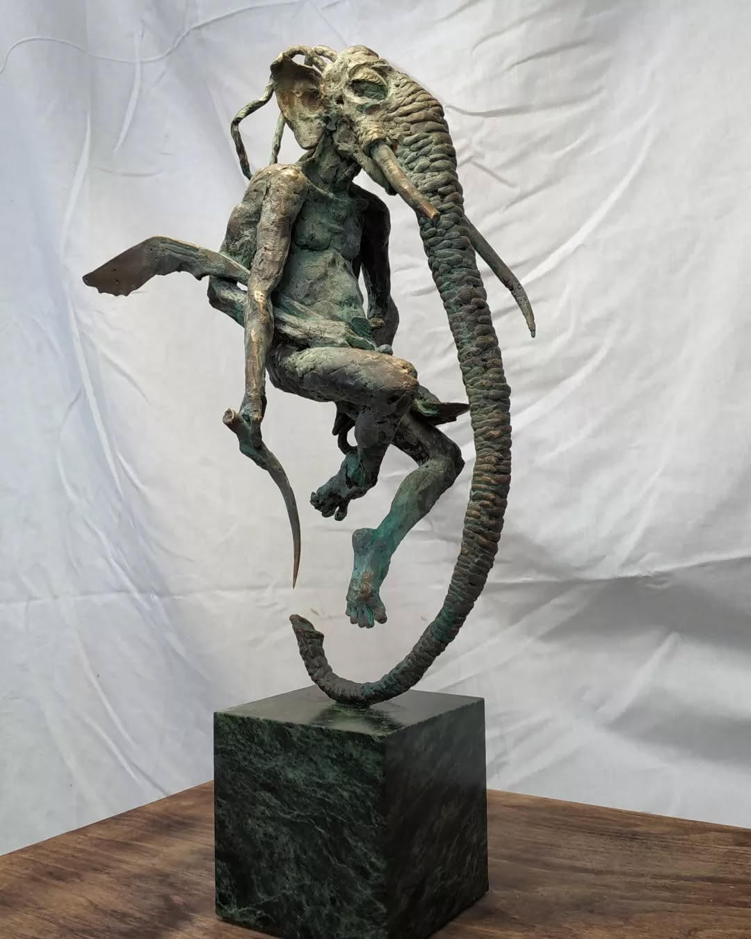 Иногда он сам становится частью скульптуры, иногда — едва заметной опорой, почти дыханием.