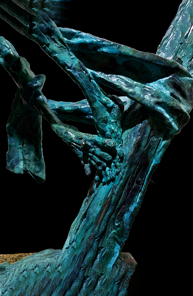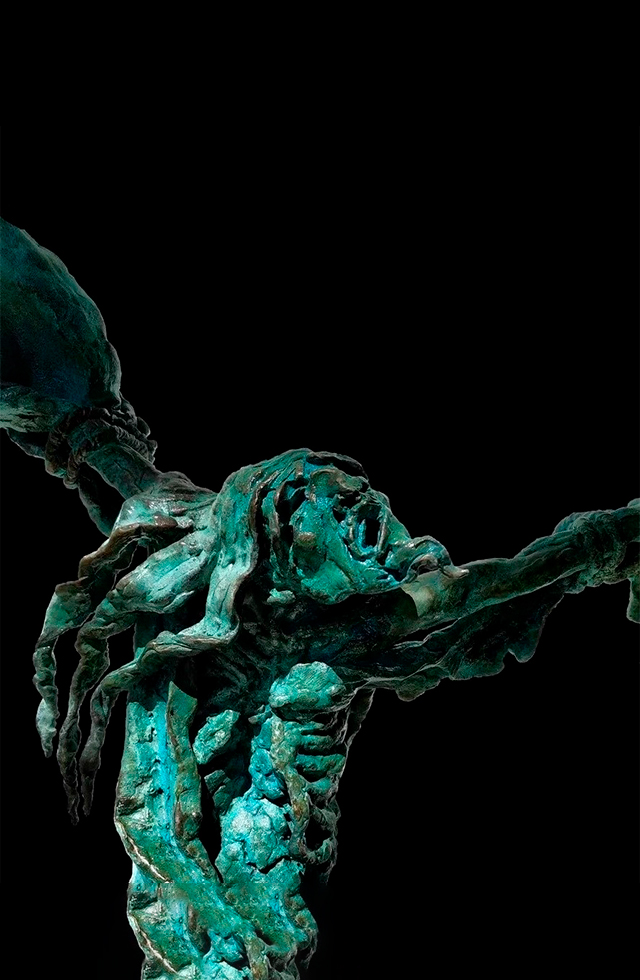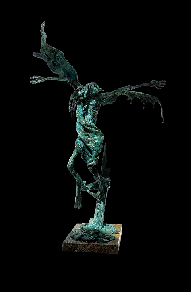 92х54х22 см. 2022г. бронза., камень Скульптура из проекта "ГОЛГОФА". Разбойник, он же Дисмас - имя преступника, который был распят на Голгофе вместе с Христом и Гестасом. Раскаявшийся и уверовавший в Иисуса, Первый спасённый из людей.