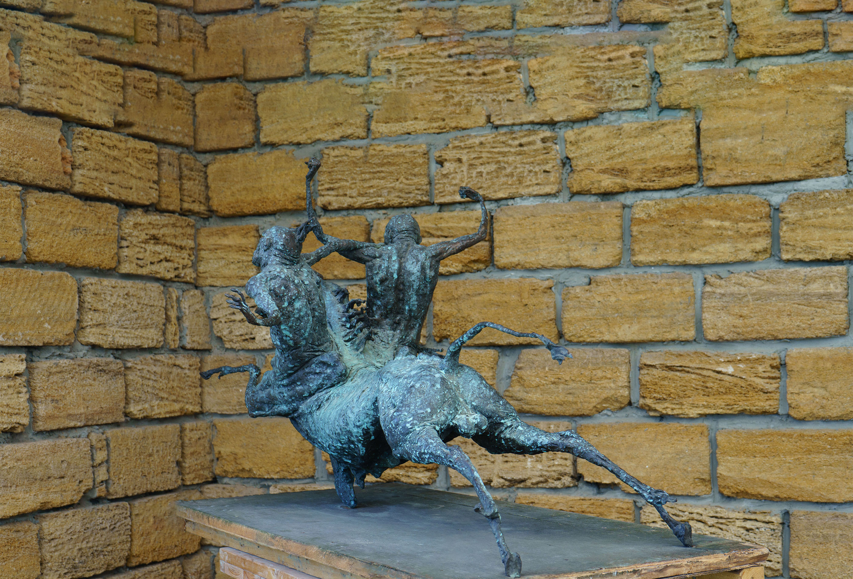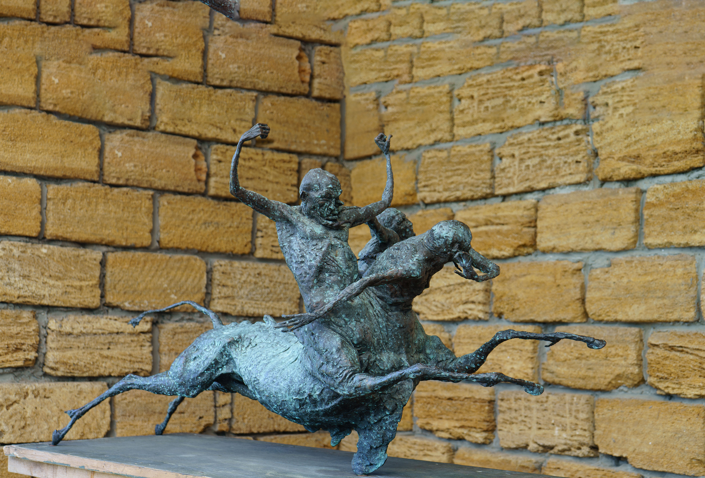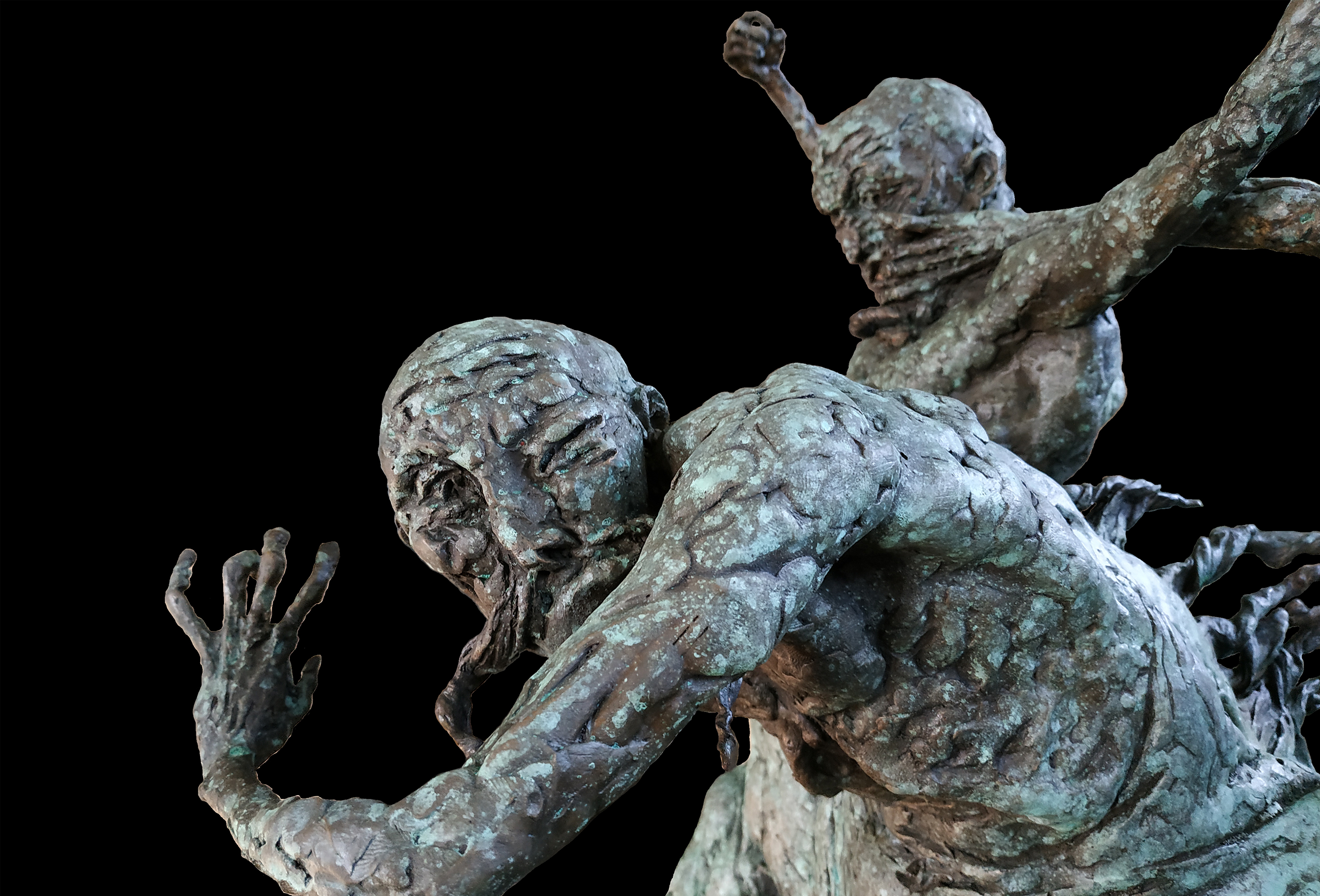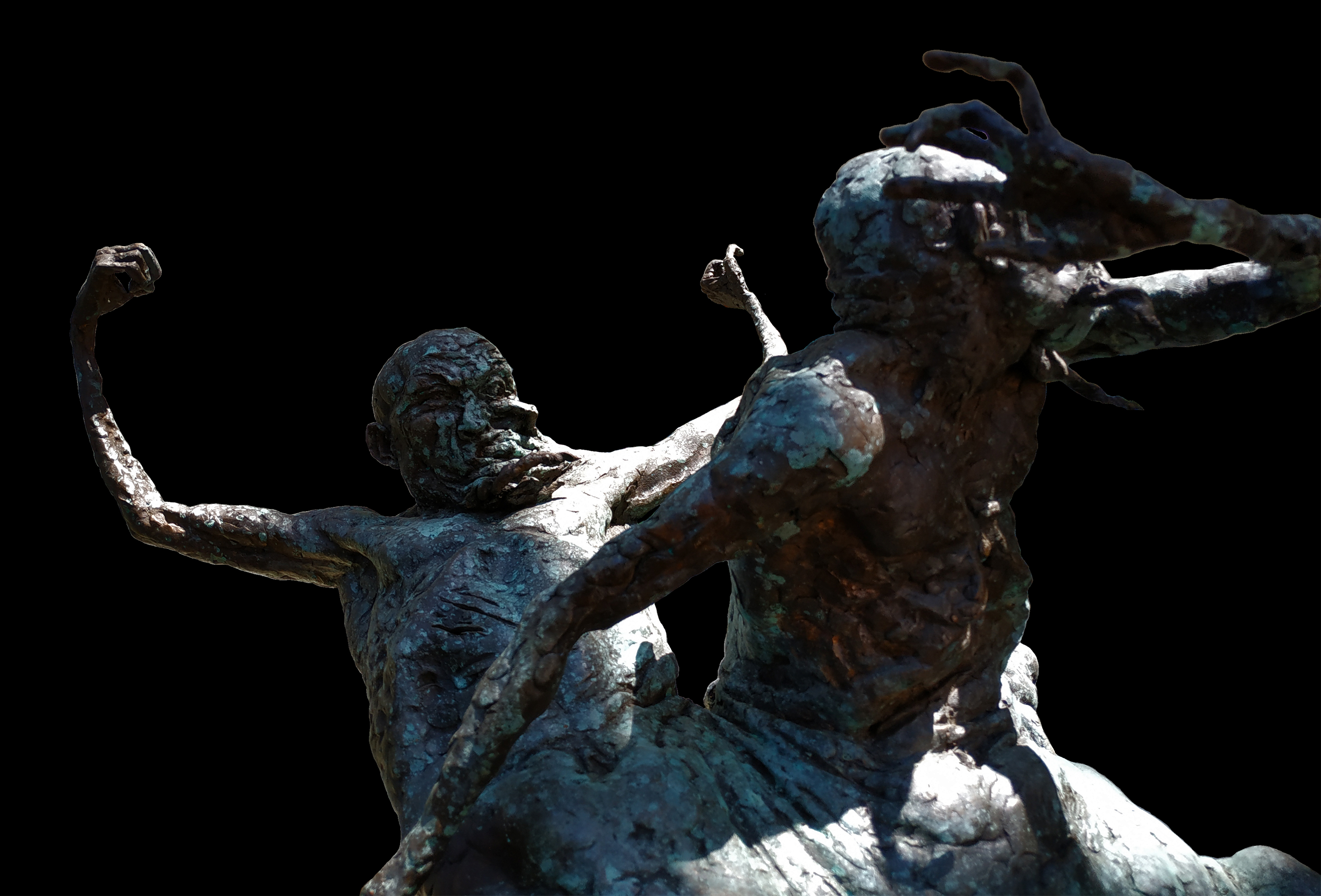 88х160х77 см. 2021 г. бронза., орех Конфликты кровных братских народов вершили свои истории на протяжении тысячелетий.. Три брата бьются между собой, где общее тело может выступать как объединение, единое начало, род, культуру....